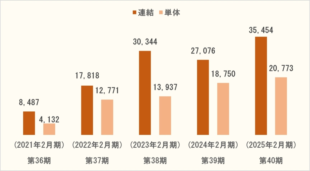 ※当社は、2024年9月1日を効力発生日として普通株式1株につき10株の割合で株式分割を実施しています。そのため第40期2025年2月期以前の1株当たり当期純利益、1株当たり純資産額は当該株式分割を考慮した金額を記載しています。